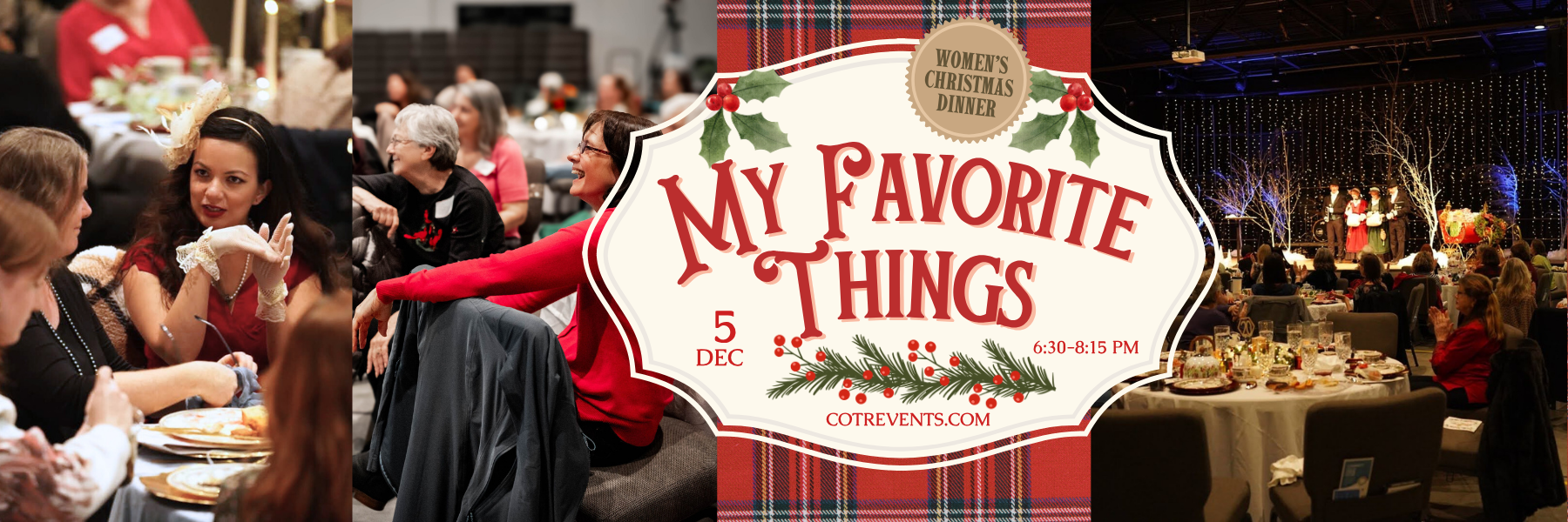 Start the Christmas season surrounded by laughter, warmth, and beauty at My Favorite Things, our annual women’s Christmas dinner. Enjoy carols, stunning themed tables, a delicious catered meal, and time to share stories and smiles with other women.
